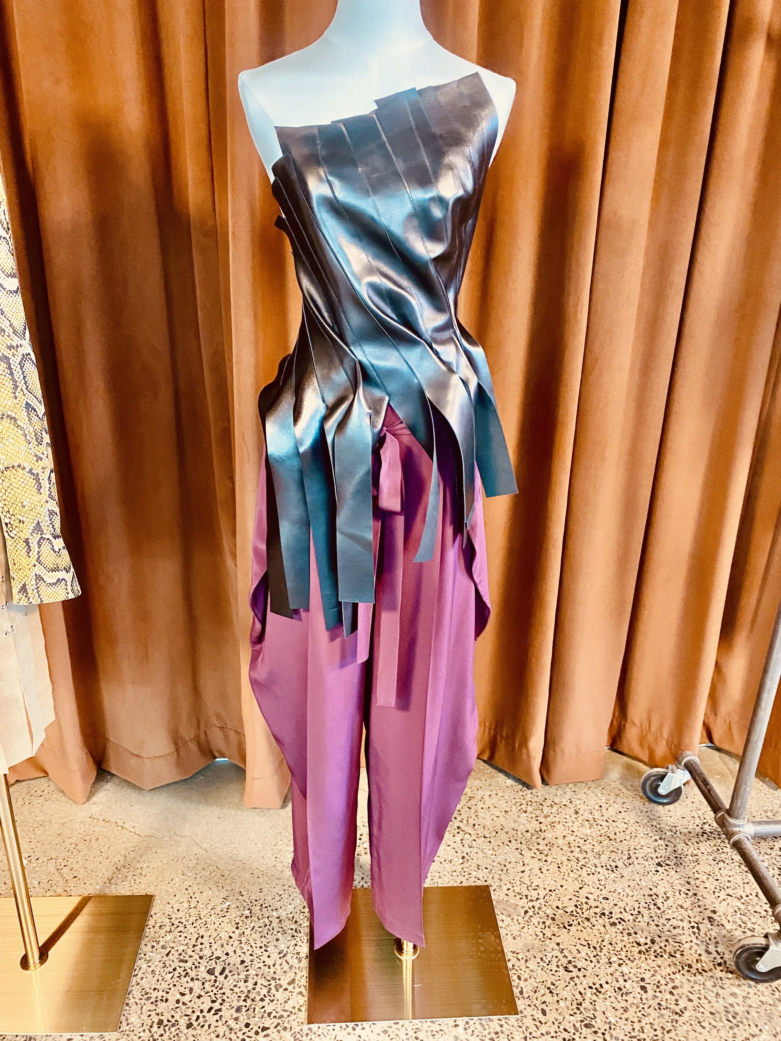 For Fall/Winter 2026, Kate Hundley presents a collection that balances refined tailoring with subtle textural drama. Structured jackets, leather pleated skirts, and fluid satin dresses are paired with rich autumnal tones—deep burgundy, cream, and python-inspired prints—creating a wardrobe that feels both modern and quietly luxurious. The collection plays with contrast, combining sculptural silhouettes and corseted details with soft draping and relaxed shapes, offering a polished yet effortless approach to contemporary dressing.